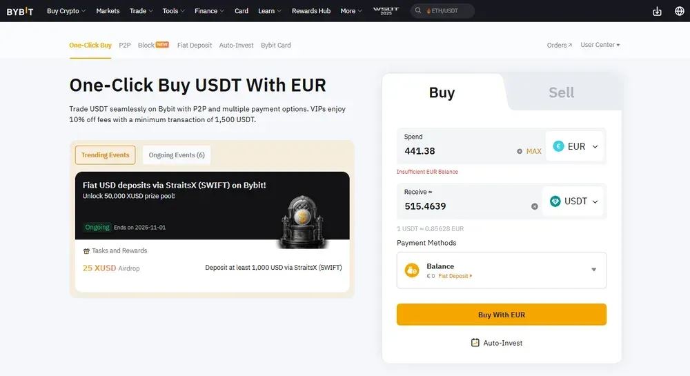 购买 USDT:您可以使用存入的资金进行现货交易,也可以使用转换功能进行即时掉期(0%手续费),还可以使用-键购买功能直接使用法定货币购买 USDT。