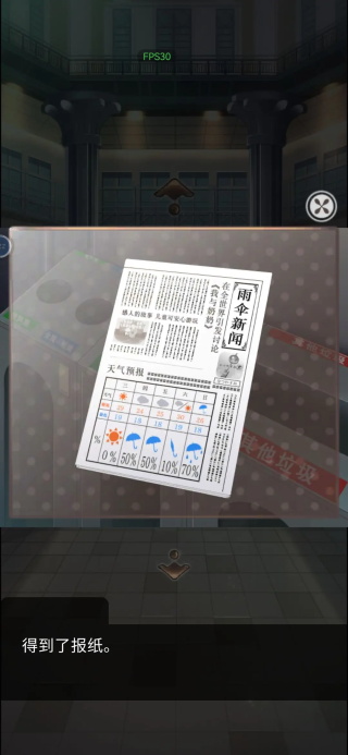 2、至站外左转,点击垃圾桶,获得报纸,得知对应图案