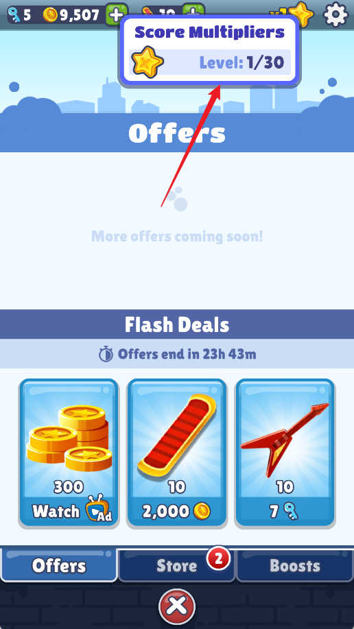 地铁跑酷希腊版怎么提升分数倍数?