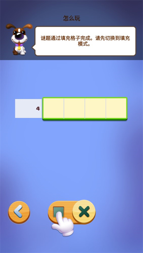 1、谜题通过填充格子完成,这里先切换到填充模式。