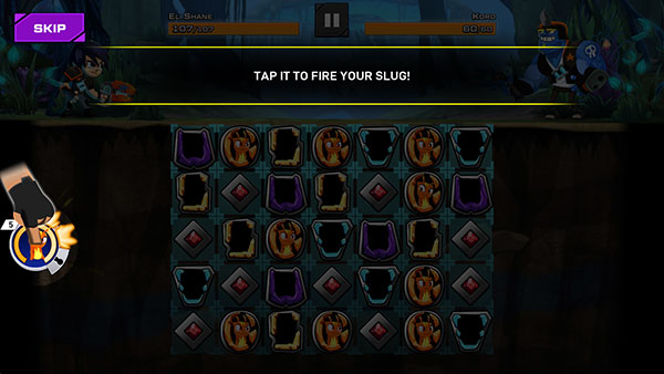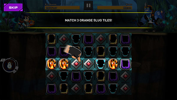 2、将三个同样的图案拖动至一起即可进行消除,每消除一次就可以对对手进行一次伤害。