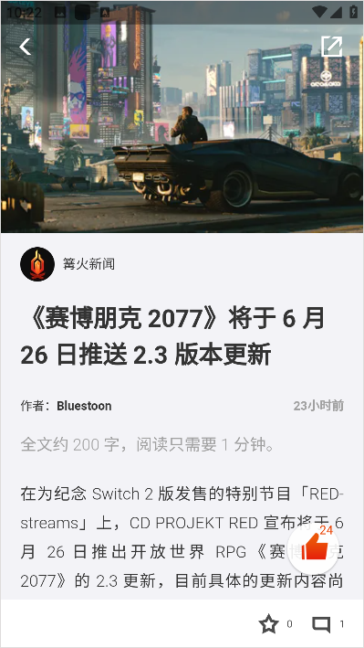 篝火营地app专注于为玩家提供全面、及时且深度的游戏内容服务。汇聚了全球范围内的热门游戏动态与3A大作信息,携手多家权威游戏媒体,从专业视角带来真实可靠的新闻速递与游戏评测,帮助用户精准发现优质游戏、有效避开品质陷阱。同时应用还打造了活跃玩家社区篝火营地,支持用户互动交流、分享心得、结交同好,以独特的杂志化视觉风格呈现内容,提升阅读体验,并支持一键收藏与分享。无论你是硬核玩家还是休闲爱好者,都能在这里找到属于自己的游戏天地。有需要的话,就快来下载使用吧!
