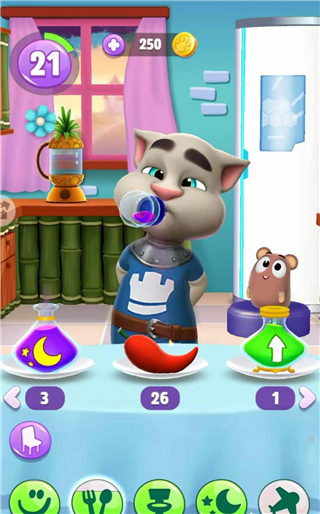 1、感受汤姆生动多变的情绪:他会因你的互动表现出开心、饥饿、想睡或无聊等各种状态。