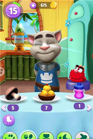 4、边玩边领奖励:陪伴汤姆完成9大阶段999级的成长,解锁新物品,赚取金币。