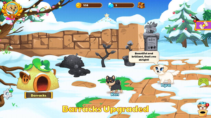3、玩家可以在游戏过程中收集超过45种造型与能力各异的狗狗英雄角色,只需完成系统设定的简单日常任务,即可逐步将它们纳入自己的收藏队伍。