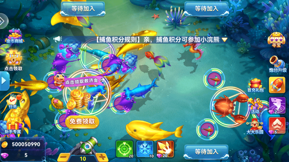 2、指尖捕鱼高爆版,无需解锁,万倍炮台,随心所欲!