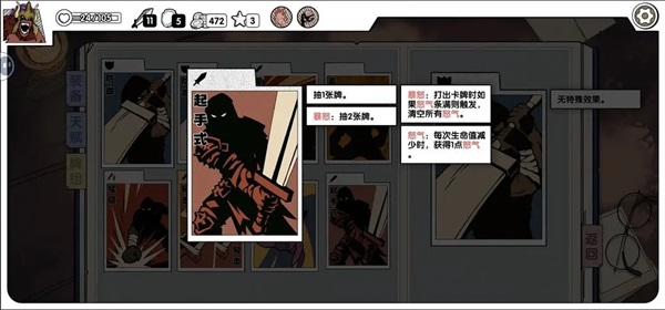 弃牌给怒,可触发后手和狂战头盔抽牌,牌组初始组件。