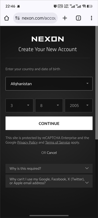 3、登录后注册绑定NEXON账号,并选择地区和出生年月日;