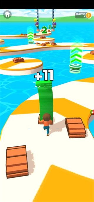 1、收集沿途的地板,搭建桥梁跨越水面,制造捷径到达终点!
