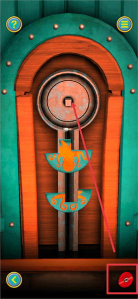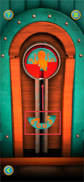 6、把【光碟】安放在大门内侧的凹槽处,接下来参照下图,先把【光碟】转动到线条呈上下走向的状态,接着将下方的碎片往上拉动,这样就能把碎片安装到【光碟】上。成功安装一个碎片后,把【光碟】旋转180度,便可继续安装下一个碎片。
