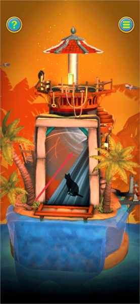 1、前面先随教程走,在教程结束后,将巨石向左下方划动,让巨石顺着楼梯滚下去撞坏下方的木船。