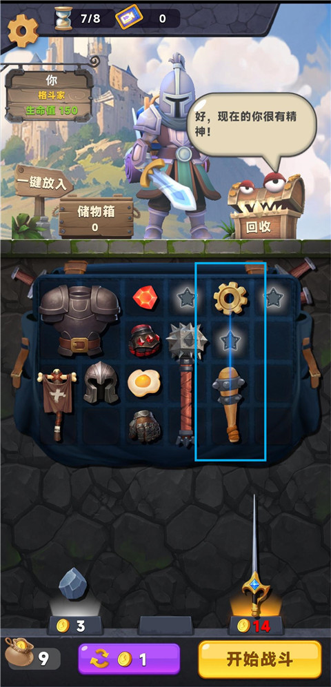 3、自动战斗:无需手动操作,背包内物品自主进行战斗。