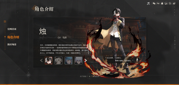 首次测试上线六名角色,三火:烛、星牧、醉笙 ,两金:光、灰,一水:冰语。