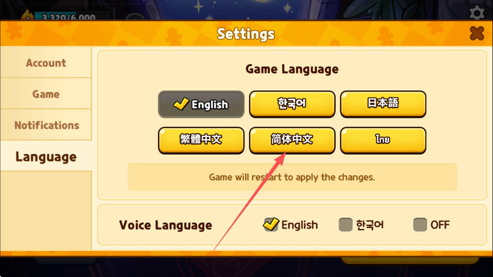 跑跑姜饼人烤箱大逃亡怎么设置成中文