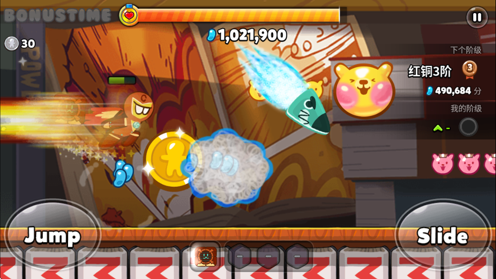 1、每天与可爱的饼乾们尽情地跑、跳、滑垒吧!数十种贱萌小饼干。
