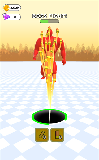 5、时间耗尽后,你将利用所收集的武器与强大的BOSS展开激烈对战,长按任意武器即可发起猛烈攻击。