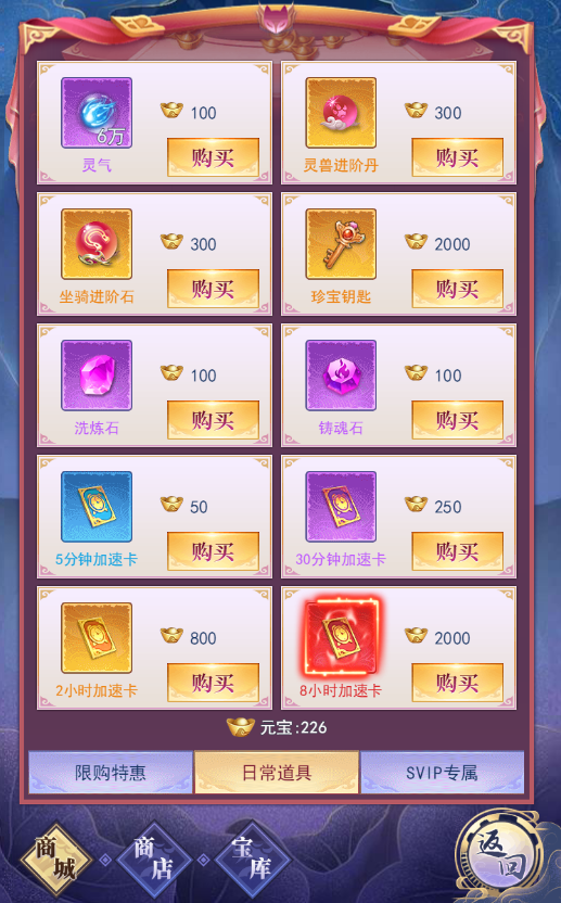 灵气的获取途径多种多样,快速挂机、灵气副本、SVIP每日礼包、探险、寻宝、玲珑宝塔、天关、瑶池仙境等等等等均可获取大量灵气,其中最为轻松快速的就是快速挂机,瞬间扫荡。
