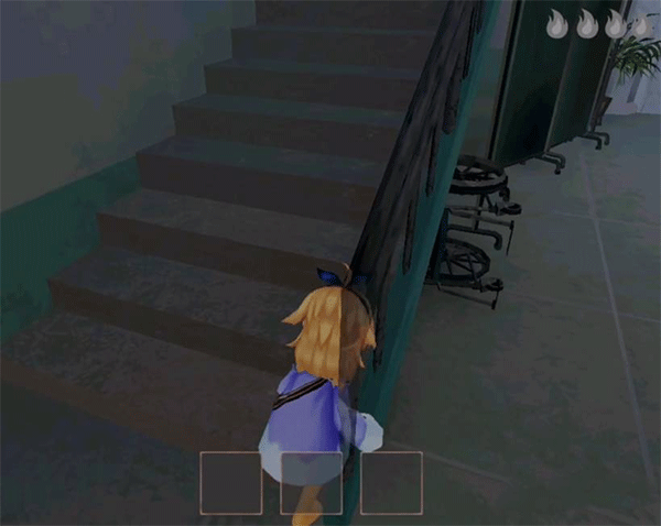 2、然后顺着楼梯扶手蹲着走,一定要蹲着