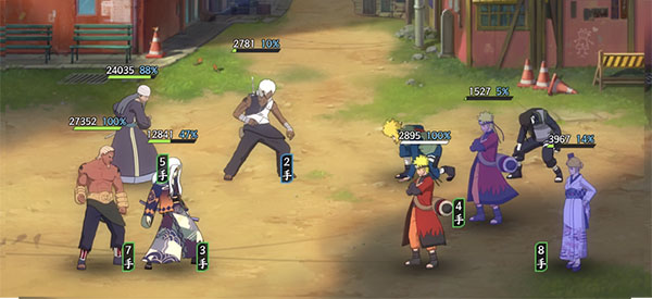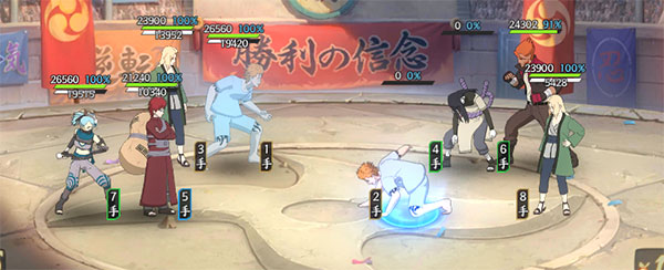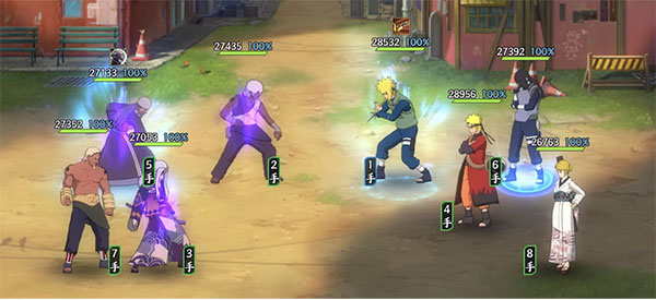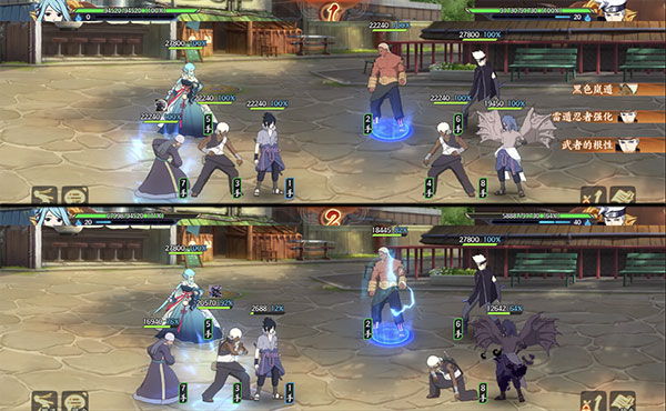 第二回合:有先攻最好重吾直接找血少的打,让对方尽快减员减轻压力,没先攻则需要纲手骗一下打断了。