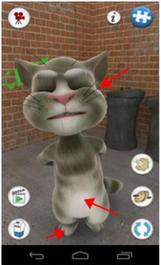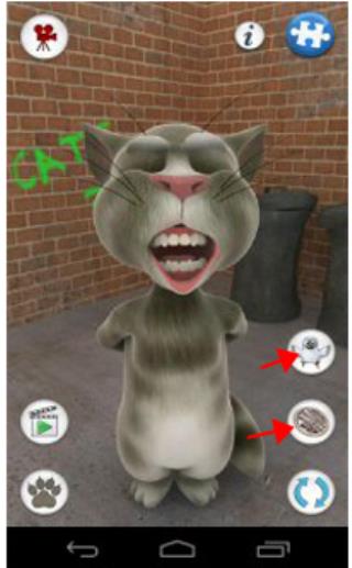 6、按下电话按钮,让汤姆与原版的会说话的汤姆进行游戏,他会用滑稽的声音复述他自己的话