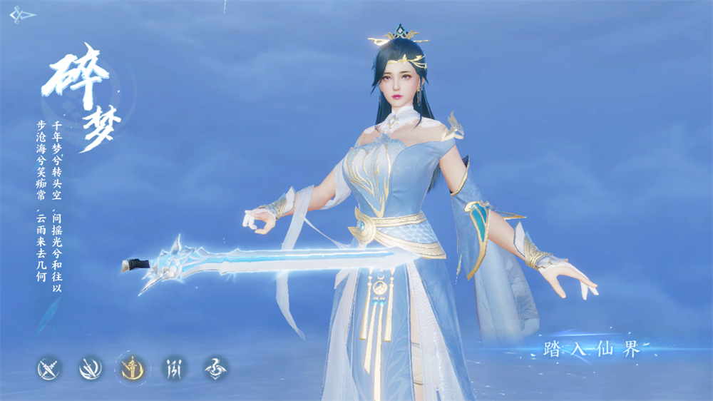 4、战斗特色:碎梦是优雅与危险的综合体。她以轻灵的身法穿梭于敌阵之中,剑光如水银泻地,无处不在。技能使其拥有卓越的位移能力,能瞬间创造一片持续造成伤害的剑阵。