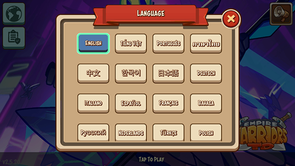 帝国战士TD英雄之战怎么设置中文