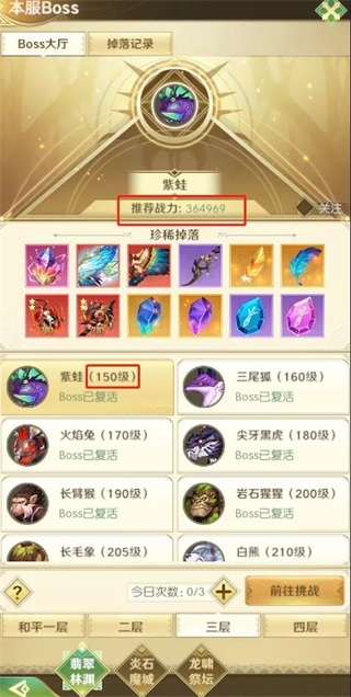 狩猎BOSS有等级限制,狩猎者们需达到相应层数的最低等级限制,才可狩猎该层数的BOSS。