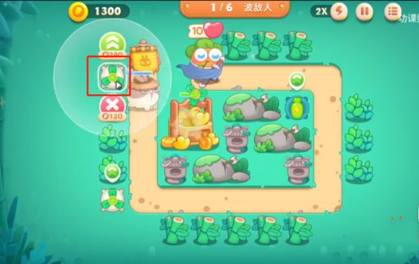 1、首先升级右边的风扇(风扇可以攻击一条直线),然后升级下面的炮台。