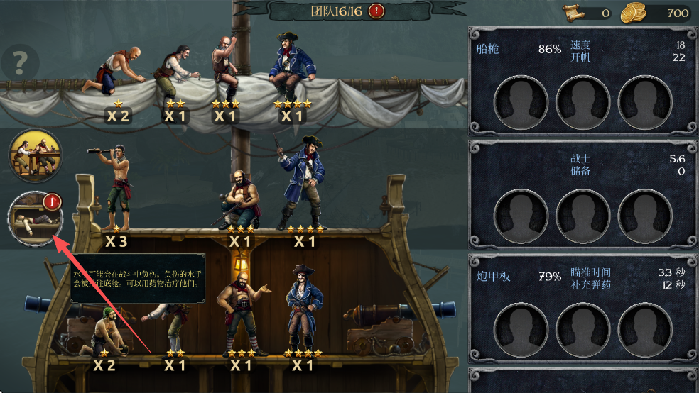 4、组建一支伟大而忠诚的水手团队,升级你的海盗,让他们从见习水手成长为经验丰富的老水手。