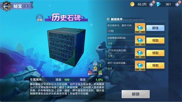 完成特定任务后,玩家可以领取钻石奖励。解锁历史石碑后,还能获得全队属性加成与专属战斗效果,进一步提升战力和策略深度。