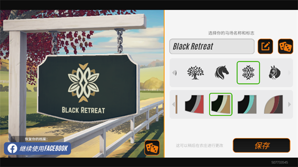 3、需要为自己的马场取一个名字,同时也可以设置马场的标志,如果还没有想到合适的名字也没关系,可以选择随机取名,稍后在农庄可以进行更改。