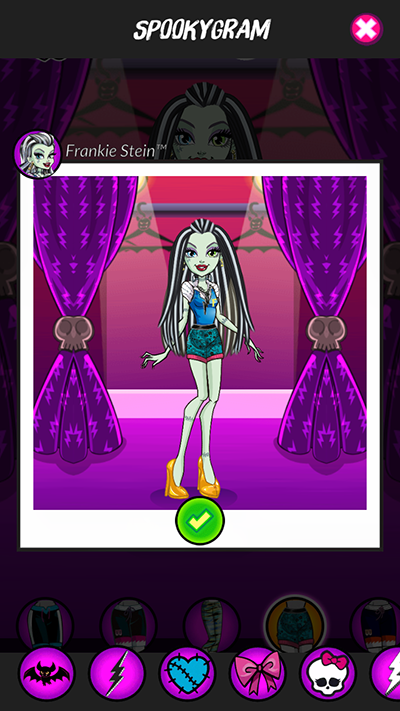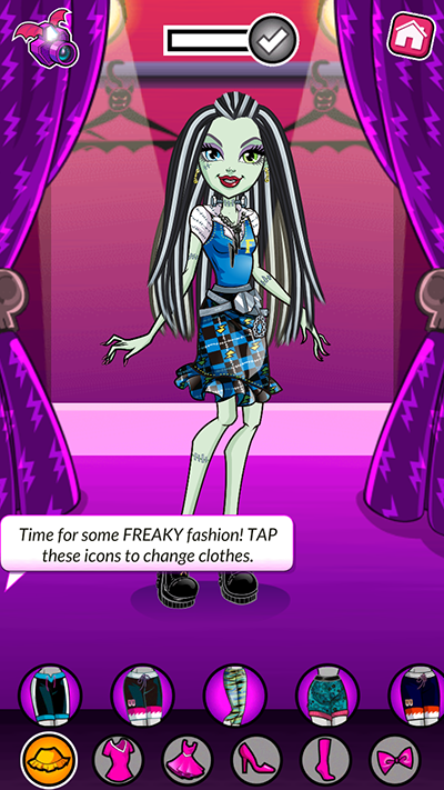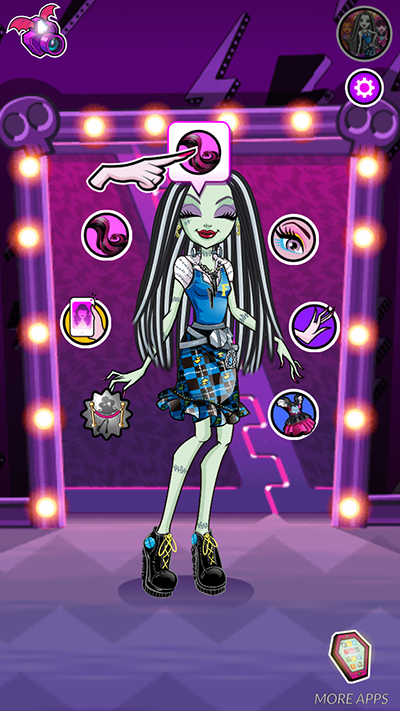 5、和Clawdeen狼以及食尸鬼小伙伴们一起搭配服装,无论是木乃伊风紧身裤还是摇滚明星造型,选择多种多样,更有大量疯狂鞋款任你挑选。
