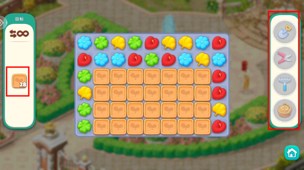 5、左侧是可行动的步数与过关要求,右侧是可以使用的游戏道具;