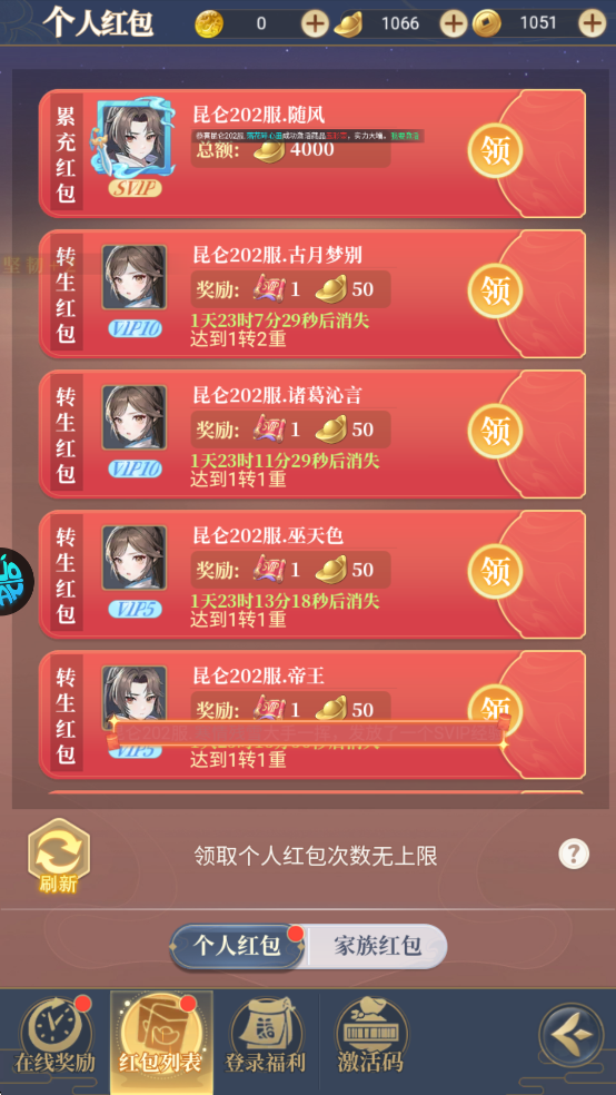 2、周卡、月卡、秘书等特权时长将一次性返还完毕,而仙玉和元宝则会分为5天逐渐返还。