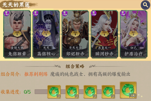 阵容组成:无天、齐天大圣、东皇太一、女娲、观世音