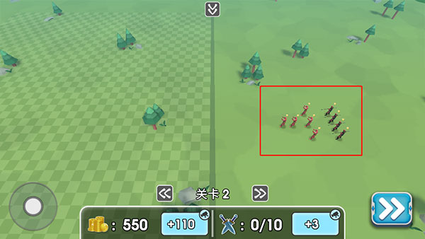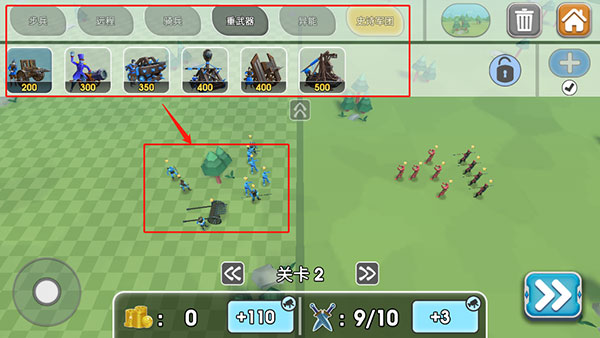 1、根据敌方阵容自由选择各种士兵,展开战略对决;