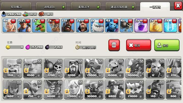 大本营处有大量火力集中点(英雄+投石器+吹风+城堡【城堡援兵已被天女处理】+看不见的电磁塔等等),面对集中的火力,可以选择多带一个冰人,冰人的冰冻可以给蛮王和训练营争取足够的输出时间。
