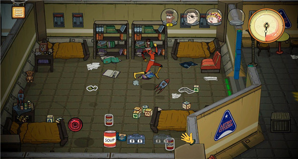 在60秒的准备时间,玩家需要找到罐头、医疗补给、太空居民手册、还有你未来的船员,然后一股脑丢进逃生舱。