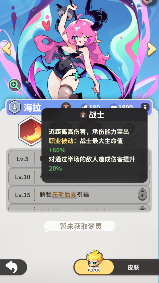 不同的精灵拥有不同的技能,获得足够的经验升级后,可以选择召唤新的精灵或者进阶已召唤的精灵