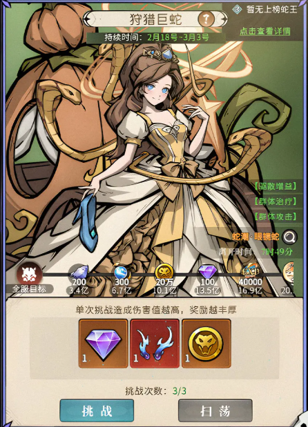 1、介绍:挑战世界巨蛇获取丰厚奖励。