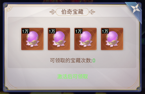 每击杀10个多人BOSS可领取[伯奇的宝藏]