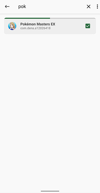4、用关键字“pok”搜索并勾选Pokemon Masters EX即可