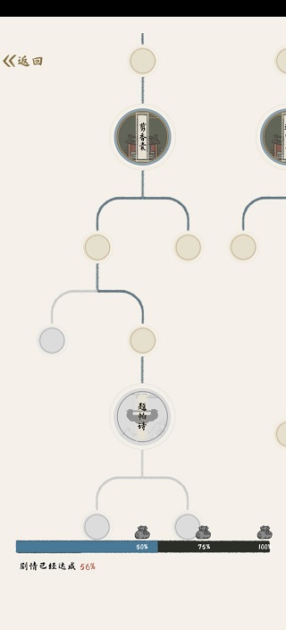 已经历的故事(大圆圈)点击后通过看广告可以重新选择故事走向。