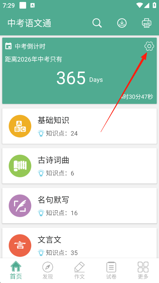 中考语文通App怎么设置中考倒计时