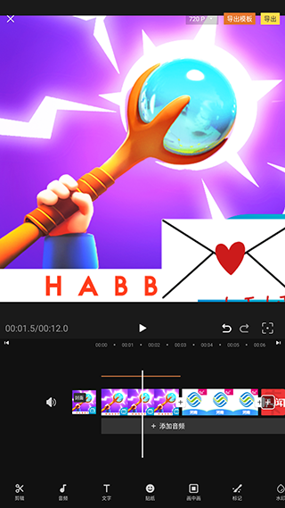 2、可添加多种视觉与音效,包括泡泡、闪电、花瓣雨、流星、爱心气球等动画特效,增强视频氛围。