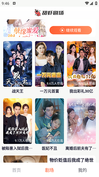 现在的人们比较喜欢看一些短剧,短剧其实讲究的快,这也是比较适应当代人快节奏的生活,一些电视剧不仅集数长分钟数也长,因此剧情也会变得格外啰嗦,一个误会需要十几集之后才能得到解除,也是让人恼火,因此短剧的崛起也是必然的,现在短剧可以在甜虾剧场这个软件上面观看,有海量资源,你想看的短剧在这个软件里面基本可以找到。