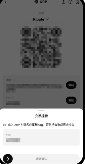打开欧易App,点击【资产】—【充币】—【充入数字货币】; 搜索或者直接点击要充币的数字资产(以XRP为例),选择充币网络; 您选择的币种网络若需要填写标签(又名Tag/Memo,通常是一串数字),系统会有提醒,【滑动确认】后即可查看并复制该币种的【充币地址】与【标签】。