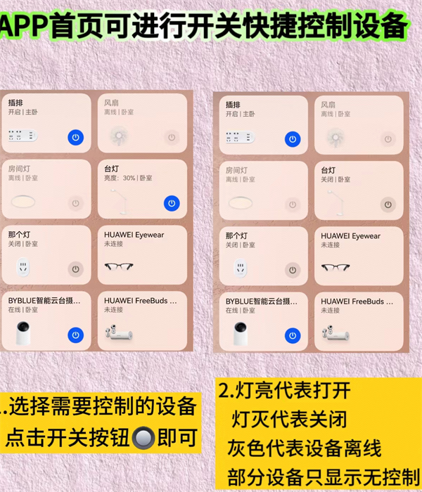 2、界面快捷控制,APP首页可进行开关快捷控制设备