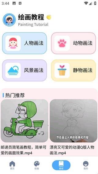 4、在下方工具栏点击教程,有各类型的物品的画法教程,也有热门教程推荐。