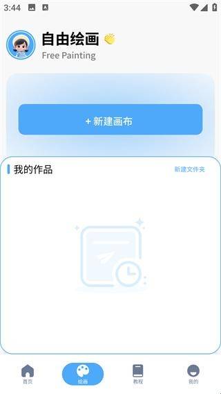 3、在下方工具栏点击绘画,可以自己新建画布开始创作,也能看到自己的作品。